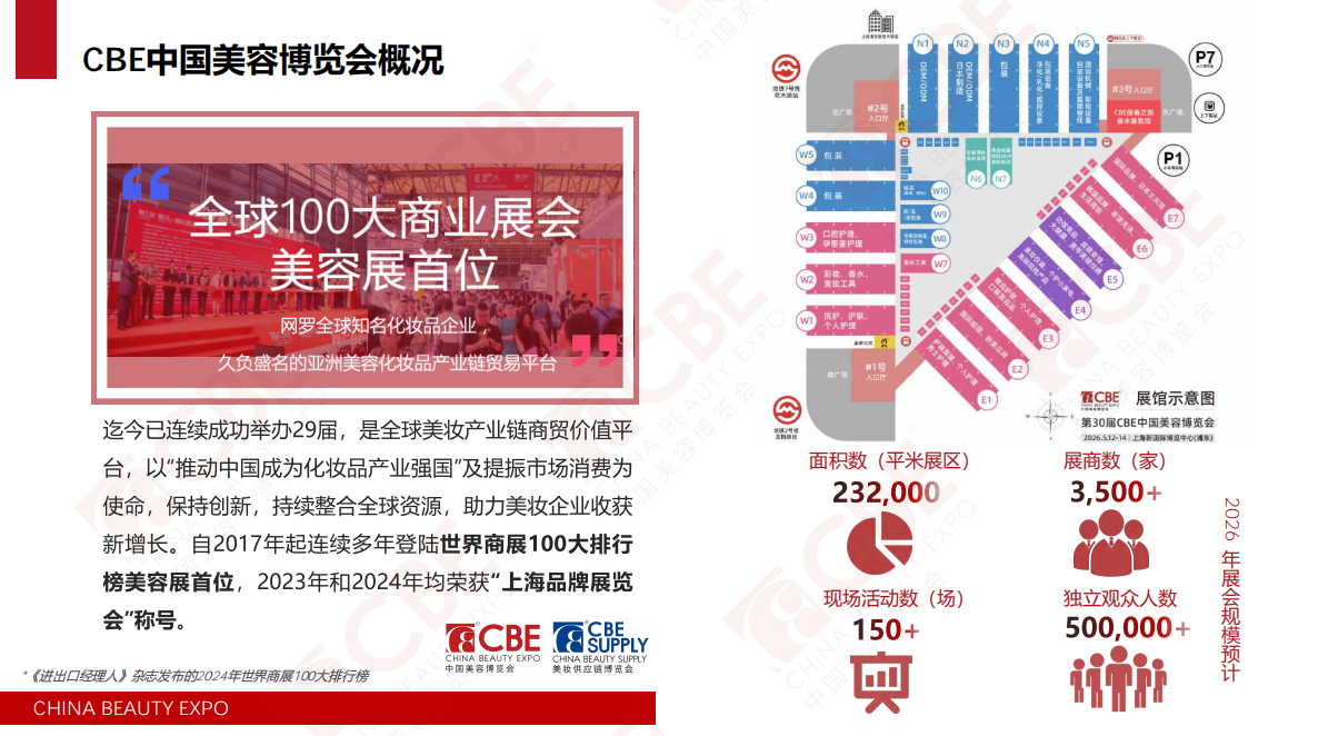總結:2026年第30屆CBE上海美博會是一個集產(chǎn)品展示、趨勢發(fā)布、貿(mào)易洽談、技術交流于一體的性行業(yè)盛會,是美妝行業(yè)從業(yè)者不容錯過的年度盛事。建議您提前規(guī)劃行程,預約登記,以便高效參觀。
