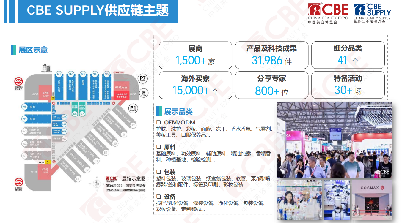 核心供應(yīng)鏈(CBE SUPPLY):** OEM/ODM、原料包材、機(jī)械設(shè)備、檢驗(yàn)檢測(cè),構(gòu)建“dingji供應(yīng)鏈矩陣”。