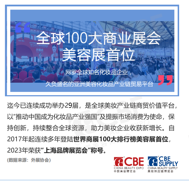 2026年,CBE中國(guó)美容博覽會(huì)將迎來(lái)具有里程碑意義的**第30屆**盛會(huì)。作為中國(guó)乃至美妝產(chǎn)業(yè)影響力的展會(huì)之一,本屆展會(huì)將匯聚dingjian力量,打造一場(chǎng)規(guī)模空前的行業(yè)慶典,見證中國(guó)美妝走向世界的輝煌歷程。