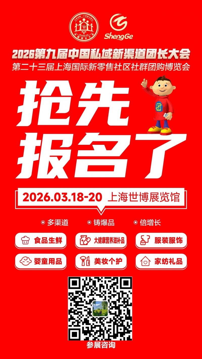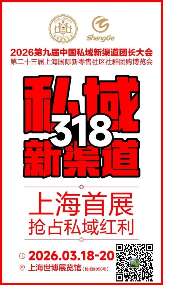 第九屆中國私域新渠道團長大會暨第二十三屆上海國際新零售社區(qū)社群團購博覽會將于2026年12月18-20日在上海世博展覽館繼續(xù)舉辦。
